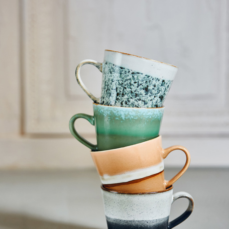 Swap your morning coffee for an espresso cappuccino. Italians swear by it, and for good reason. Thanks to its generous 330ml capacity, you have complete control over the strength of your coffee. Thanks to the earthy elements and natural colours, this is the most relaxed range in the retro 70s ceramic collection. The exciting colour compositions and textured, hand-finished surfaces make each piece unique.