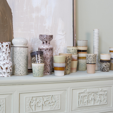 An all-time favourite - the old-fashioned drip, the trendy Americano or the perfect slow coffee. The coffee mugs have a 230ml capacity, so more than enough to fill your beloved mug. Thanks to the earthy elements and natural colours, this is the most relaxed range in the retro 70s ceramic collection. The exciting colour compositions and textured, hand-finished surfaces make each piece unique.