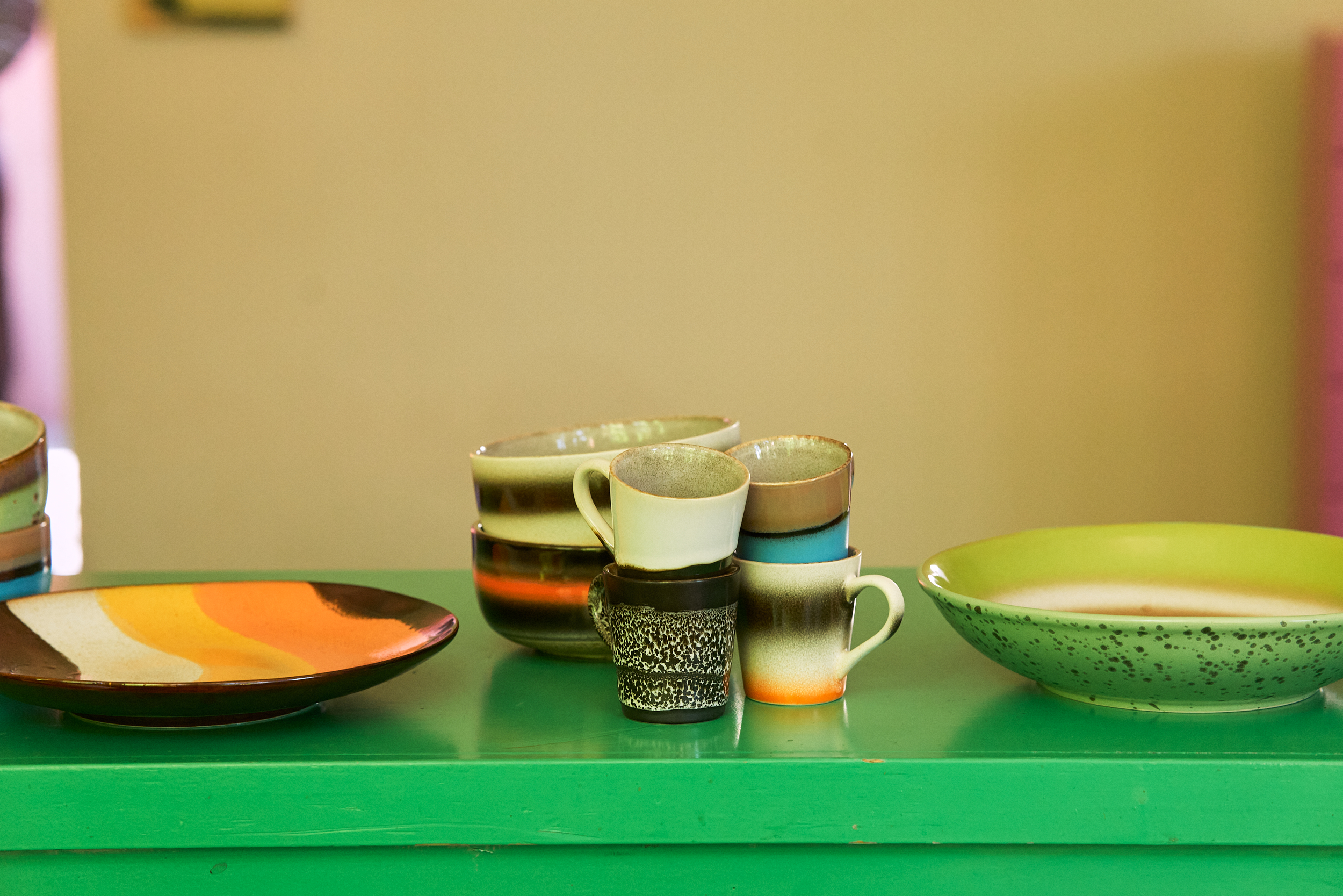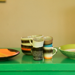 Food tastes even better when it is served on the right plate. The brighter the colours, the happier we get. Our 70s ceramic dinner plates are just right, thanks to the lively colour combinations and unique finishes that give the plates an imperfect look.