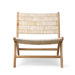 An essential part of the interior. With its low and wide seat, this is the ultimate lounge chair, and thanks to the strong, natural materials, you will enjoy many years of comfortable use. The teak frame provides stability while the woven abaca seat bounces gently. Make your lounge spot complete with the matching ottoman.