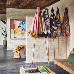 With the designs in this umbrella collection, we pay tribute to the flower power period of the 70s, space age designs and global nations. This sunshade is ready to cover any outdoor event. It is made of a beech wooden pole, steel wire ribs and in polyester fabric; good for any sunny weather condition and any kind of outdoor party!