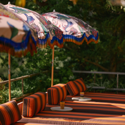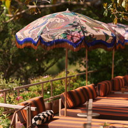 With the designs in this umbrella collection, we pay tribute to the flower power period of the 70s, space age designs and global nations. This sunshade is ready to cover any outdoor event. It is made of a beech wooden pole, steel wire ribs and in polyester fabric; good for any sunny weather condition and any kind of outdoor party!