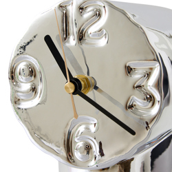 Designed to combine function with charm, the ceramic clock is one of a kind thanks to the craftsmanship and imperfections created by the firing process. The chrome glaze and hand-painted number plate give the clock a nod to the past, adding a subtle metallic sheen that catches the light beautifully. The chrome finish not only adds depth and character but also gives the clock a sleek, polished look, making it stand out in any room. Its small size and refreshing colour make it a timeless object in your everyday home, effortlessly blending old-world character with contemporary design.