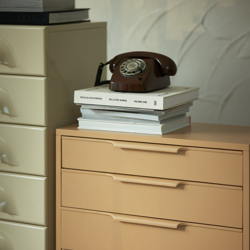Welcome 70s Space Age design in your interior. For those who dare to be different and are not scared of a bit of spice and colour. The Chest of Drawers are real eye-catchers and made of glazed Sungkai wood.