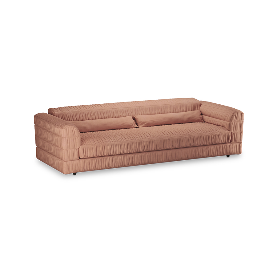With its elegant lines and ruffled fabric, this sofa will impress in any room. The carefully designed curves make the seating comfort irresistible and the wide seating area provides enough space for you and your company.