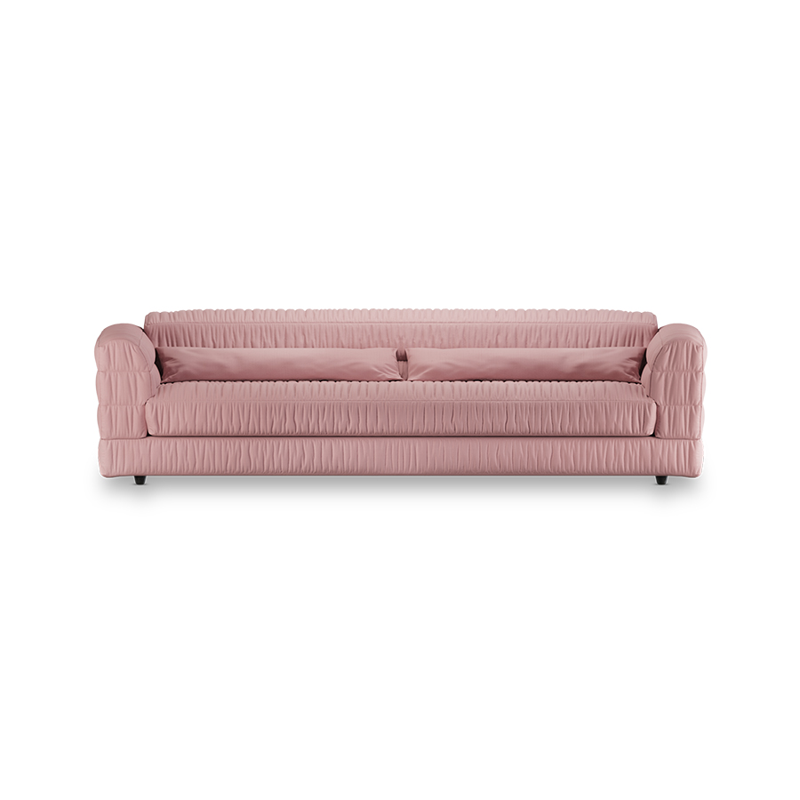 and hardboard. Seat suspension: nosag springs + polypropylene 70 g/m2. Seat filling: HR 3032 foam covered with dacron cotton wool 150 g/m2. Back filling: HR 3032 foam covered with dacron cotton wool 150 g/ m2. Separate back cushions: mix of siliconefibers and P40 (polypropylene)