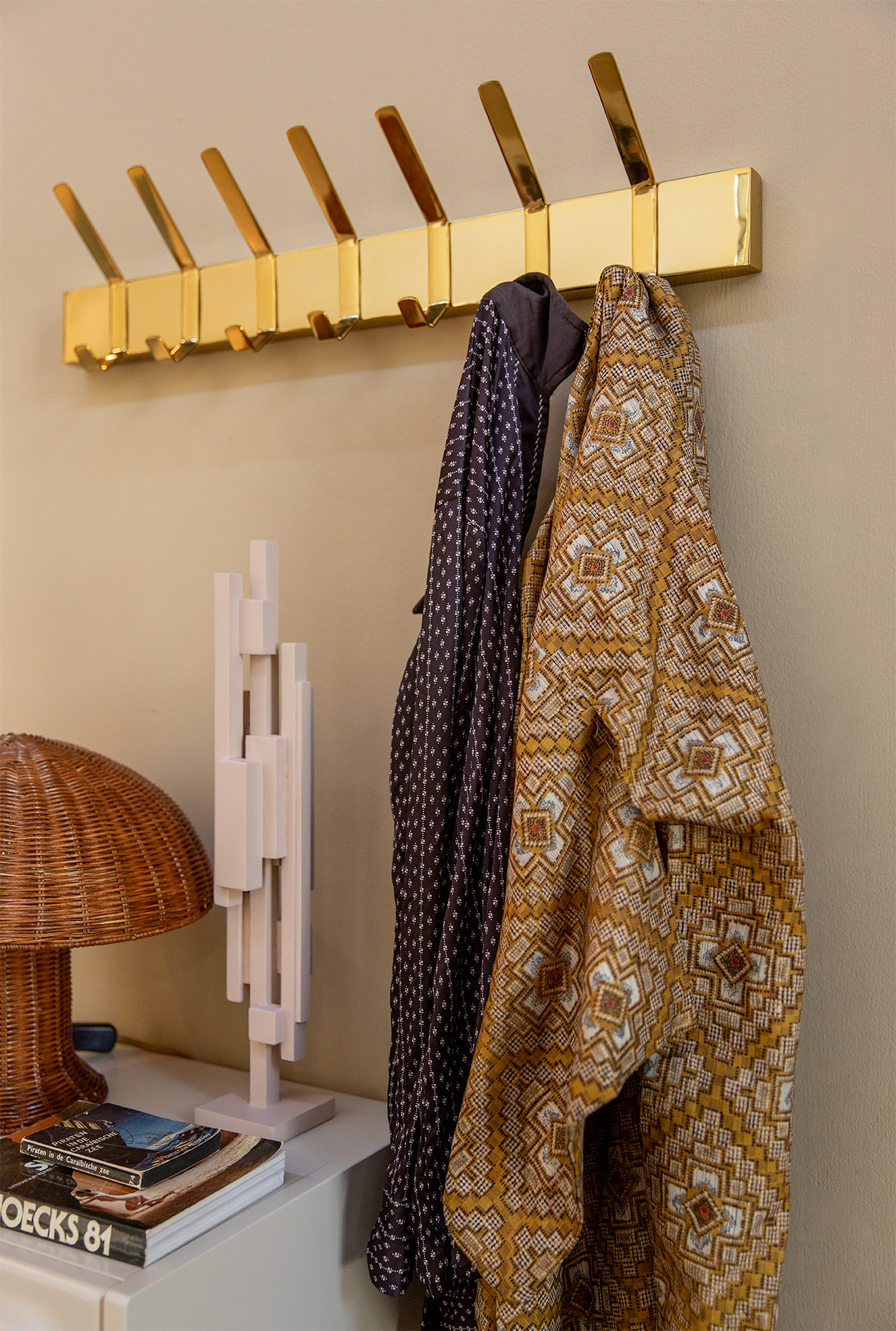 Store your clothes in style with this brass clothing hook. The minimalist design provides a modern counterpart to the luxurious brass material. The large version provides enough hanging space for an entire family and acts as a fully-fledged wardrobe in your entrance hall.