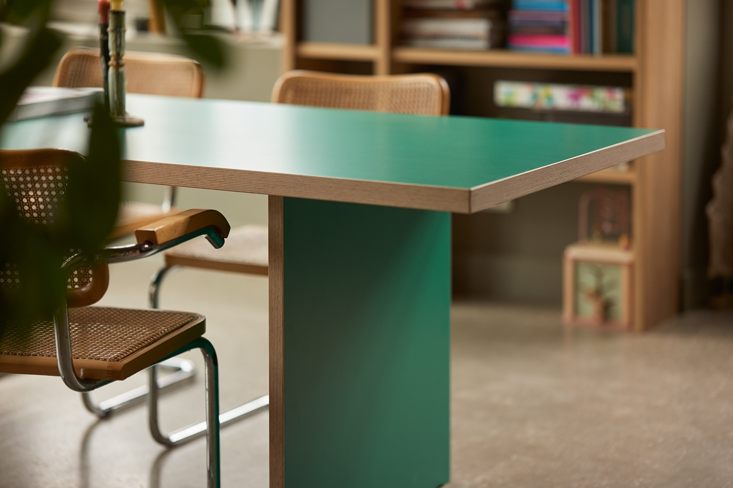 Dining table, green, rectangular 280cm