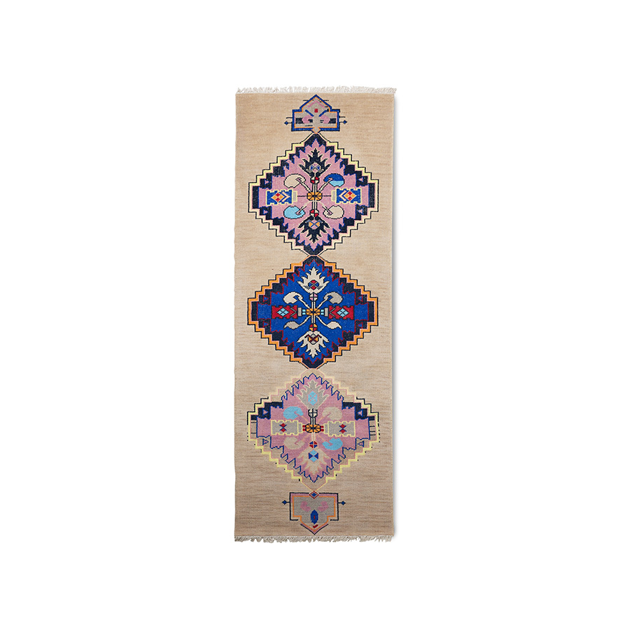 Looking for more colour in your interior but not sure where to start? With this hand knotted woolen runner you have a natural base but also beautiful blue and purple colour accents added to your room.