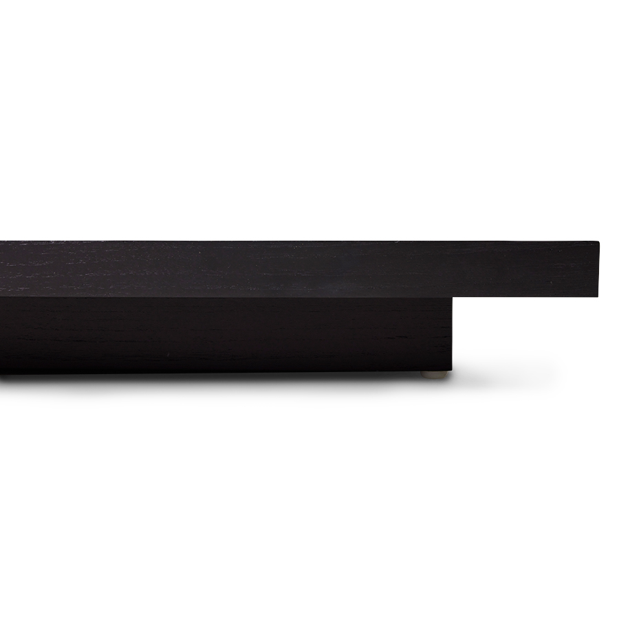 Minimalist elegance defines the Lounge coffee plateau L in black, creating an ambiance of relaxed sophistication. Crafted from Sungkai wood with a dark finish, this versatile piece serves beautifully as a coffee table, a sleek low-profile TV stand, or a stylish side table for curated decorations.