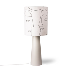 Natural texture meets bold expression. This lampshade is crafted from a raw, organic material and printed with playful, contrasting line drawings of abstract faces. When lit, the design comes to life—casting a soft glow that highlights both the artwork and the material’s warmth. A functional piece with a creative twist.