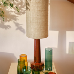 Pure retro energy. This ceramic lamp base has a clean, structured silhouette finished with a deep red reactive glaze. The glossy surface reveals subtle variations that make each piece unique, while the bold hue adds instant warmth and character. A true standout that bridges vintage charm with modern design.