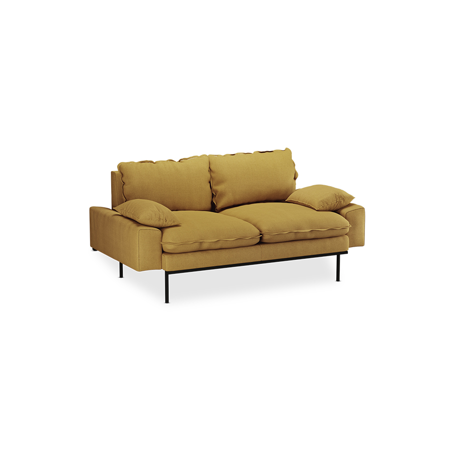 Retro sofa: 2-seats, linen, burnt ochre