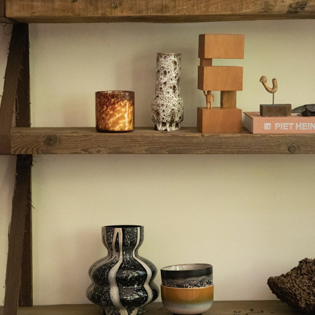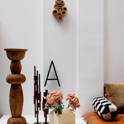 With its brutalist form and playful composition, this ornament is a striking accessory inspired by the skylines of the city. Available in different sizes and variations, all made from teak wood.