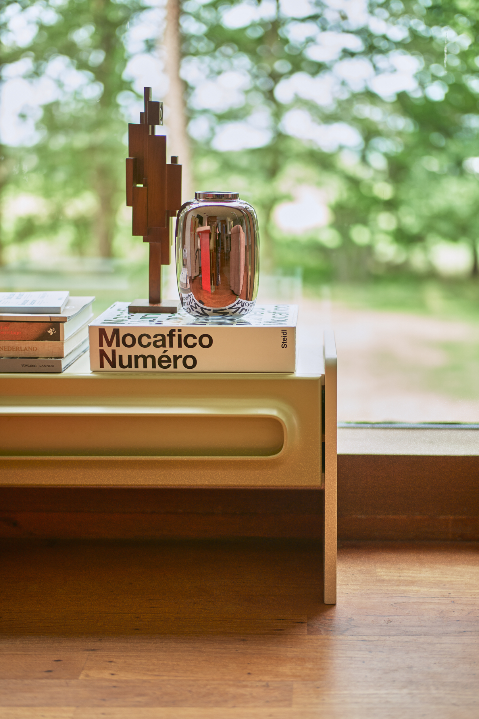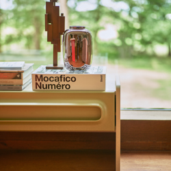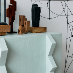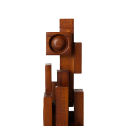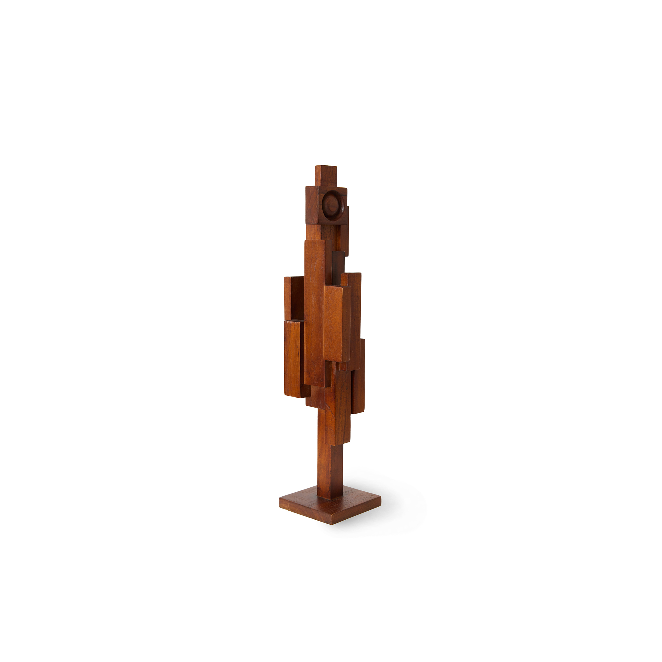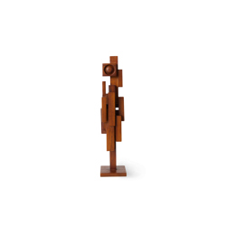 With its brutalist form and playful composition, this ornament is a striking accessory inspired by the skylines of the city. Available in different sizes and variations, all made from teak wood.