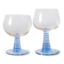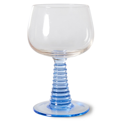 Hand-blown swirl wineglass with a solid blue coloured glass base. Stands out immediately and gives the glass a playful look. This way you can enjoy your wine or another drink even more.