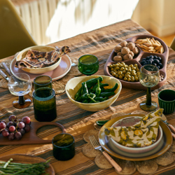 Add unique reflections of green in a playful dance of light with our Emeralds collection. From table and dinnerware to decorative pieces, shades of jewel toned green seamlessly blend with hand finished smooth shapes, adding a fresh Mediterranean vibe to any setting. A careful mixture of transparent glassware, ceramic, stoneware with reactive glaze and crackle glaze, each piece in this perfectly balanced series combines the finest quality with harmonious designs.