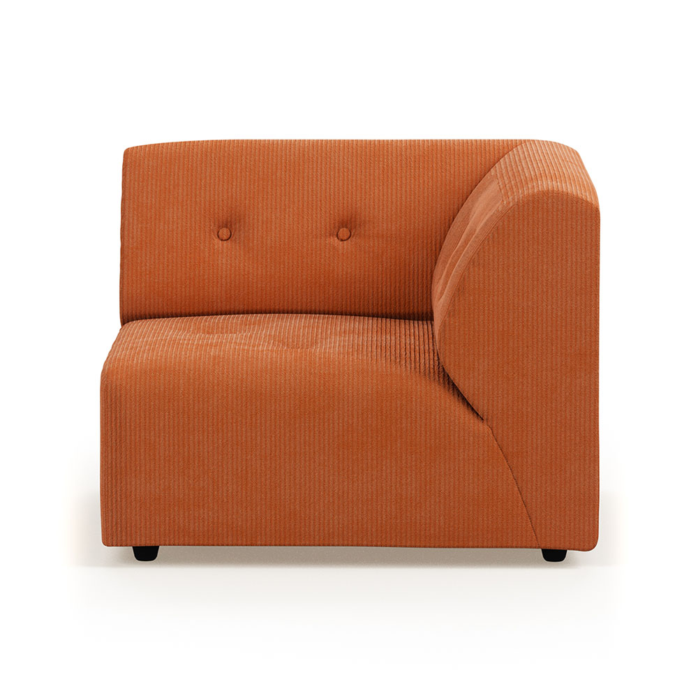 Vint couch: element right, corduroy rib, dusty orange