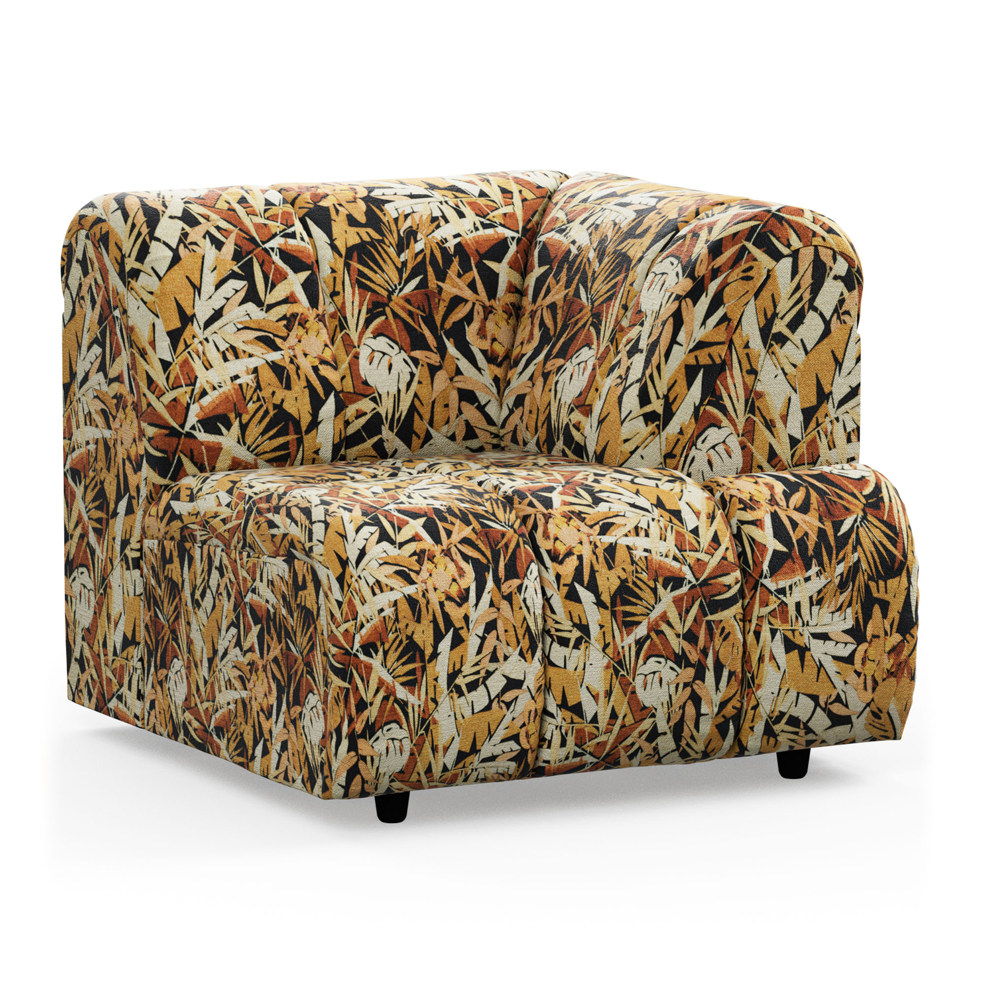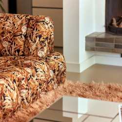 Inspired by the desire to lounge around from time to time, we have created a couch that is both multi-functional and contemporary. You're in charge and you can create the couch you want with our nine Wave couch elements. It has a slightly more active seat and can be combined with an inviting divan element. The overall shape of the couch can be traced back to Hollywood in the early 1970s and, thanks to its round curves, it will turn your living room into an inviting place to gather and relax. Get ready, because the couch comes upholstered in a special fabric that has only been designed for the Wave couch. The jungle print is for those who have a craving for richness and extravagance in their lives.